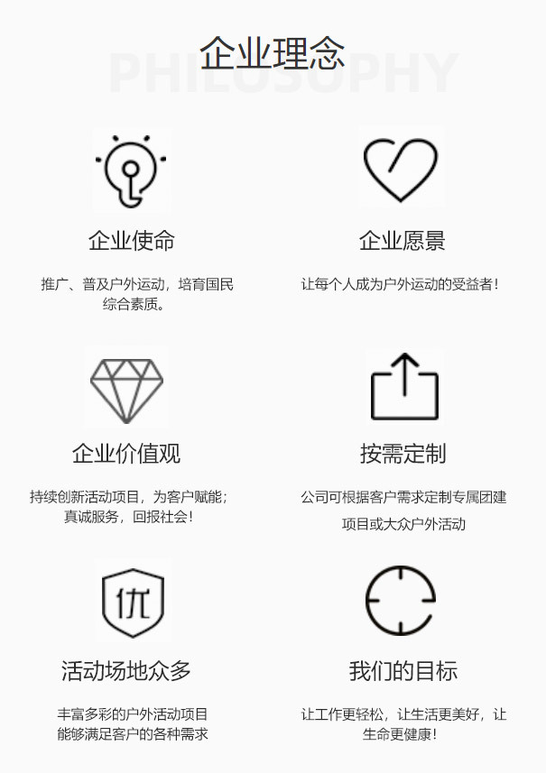合肥宇行户外运动有限责任公司,是一家主要从事拓展培训(单位团建)、大众户外活动、户外产品租赁及销售为主要业务的公司。 公司大众户外活动业务板块,主要有自驾行、露营 、溯溪、登山、徒步、亲子、冬夏令营、研学、休闲避暑、摄影、自然科普、红色瞻仰、党团建服务等活动项目。 公司可根据客户需求定制专属团建项目或大众户外活动。 公司秉承:以推广、普及户外运动,培育国民综合素质为“企业使命”,让每个人成为户外运动的受益者为“企业愿景”。 公司自有及签约活动场地多,能满足客户各种需求。公司在金寨县青山镇姜河村自建的营地及周边,可开展丰富多彩的户外活动项目,如露营或野营、野炊、荒野求生、溯溪、溪钓、溪降、徒步、登山、自然科普、户外瑜伽、摄影、自驾、休闲避暑等,是单位团建、大众户外活动的优选之地。 我们热烈欢迎每一位客户,与“宇行户外”畅行天下,拥抱自然,仰望星空,健身怡心,共成长! 因为我们相信:与“宇行户外”的每一次同行,都是在成长! |